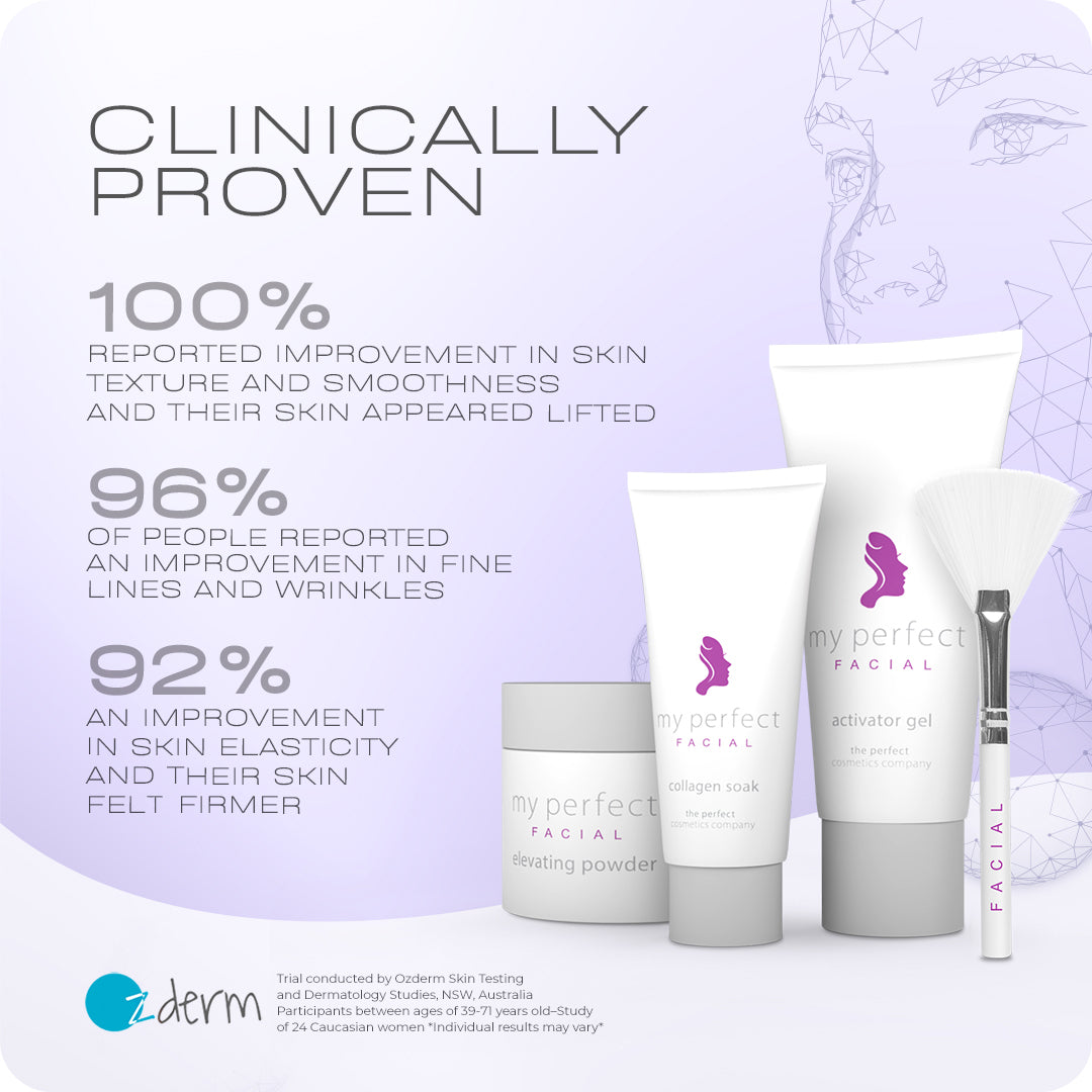Clinical trials for My Perfect Facial by Ozderm Skin Testing reveal transformative effects that position it as a true leader in non-invasive skincare. Unlike most products, this solution to sagging skin has the science to back its bold claims.